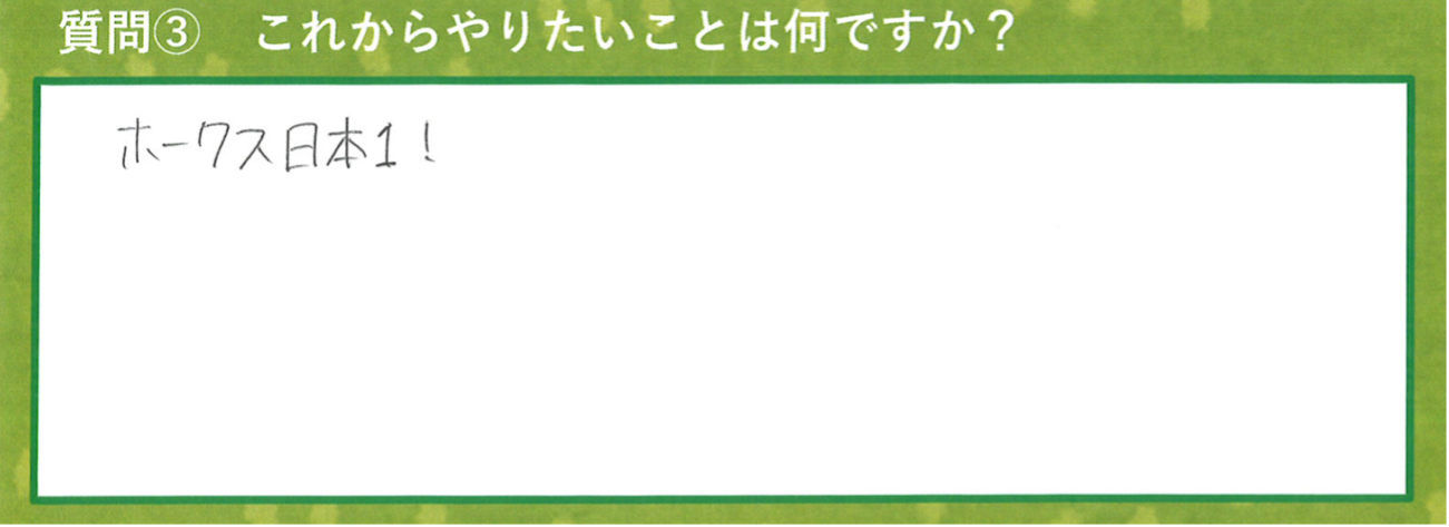 そして付き添った親御さんからは「球場には選手以外にもいろんな人がいて、いろんな仕事をしていることを知れて良かったです」、「ものすごい貴重な体験をさせてもらいました。最後、現役の選手にも会えるとは思えなかった」、「せっかくの機会だったのでもっと積極的に質問して欲しいなと思いましたけど、いい経験になったと思います」、「自分ではさせてあげられない経験を、しかも大好きなホークス相手にできてすごく良かったです」などの声。今回の体験を通して子どもたちの成長に期待を寄せていた。