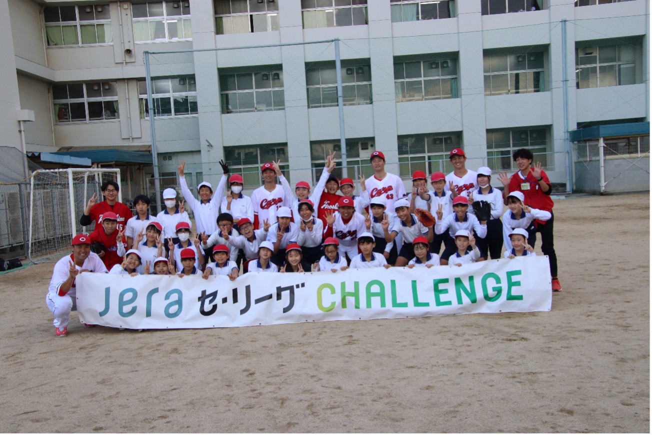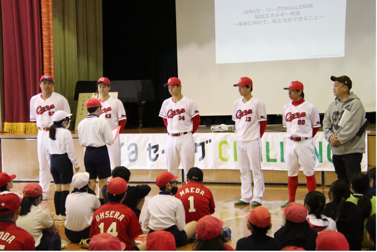 その一環として、JERAがセ・リーグ6球団と協力し、地域の未来を担う小学生に、環境について考えるきっかけとスポーツが与える感動を伝える「JERA セ・リーグ CHALLENGE 次世代支援プロジェクト」を実施。23年に横浜DeNAベイスターズ、読売ジャイアンツ、24年は東京ヤクルトスワローズ、中日ドラゴンズの4球団で行われた。今年1回目は、広島東洋カープが広島市立庚午小学校を訪問して、小学6年生140名を対象に環境・エネルギーに関する特別授業及びスポーツの特別授業が開催された。