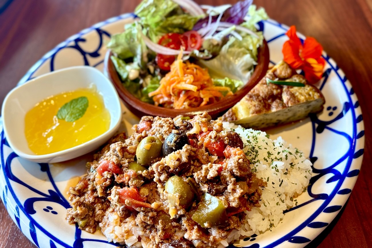 宜野湾球場から車で約10分、カリブの国々を旅しているような気分を味わえるカフェバーがある。平日11時30分〜15時(L.O.14時30分)はランチ営業(水曜定休)しており、キューバ、ペルー、ジャマイカなどのカリブ地域の料理が楽しめる。おすすめは「沖縄ではここでしか食べられない」というキューバの家庭料理「ピカディージョ」。色とりどりの野菜とオリーブ、レーズンが入った香り高いラテン風シチューは本格的な味わいで、添えられたサラダやスペイン風オムレツも美味だ。夜は各種カクテルを中心にお酒を楽しめ、ライブやイベントなどを開催中。食べて、飲んで、踊って。南国気分がさらに高まること間違いなし。是非、足を運んでみてはいかが。